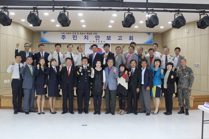광주경찰서는 주민 눈높이 치안을 구현하기 위해 경찰의 활동상을 주민들에게 설명하고 적극적인 이해와 협조를 구하기 위한“2차 주민치안보고회”를 개최하였다고 밝혔다. 이번 2차 주민치안보고회는 지난 5. 16.~ 24간 실시됐던 1차 주민치안 보고회에서 나온 주민들의 요구사항에 대한 조치결과를 설명하고, 현재 추진중인 각종 치안정책에 대한 주민들의 적극적인 참여를 통해 안정적인 광주지역 치안을 만들겠다는 취지에서 계획되었다.