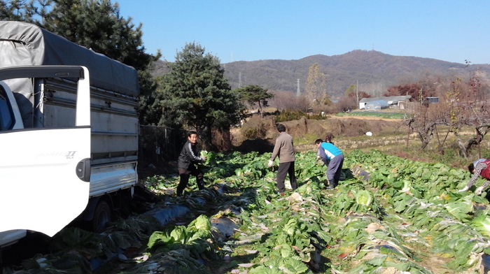| ▲ 보개면주민자치위원회 이웃사랑 배추수확 행사 © 이정수 | |