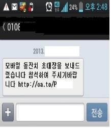 * 지인에게서 온 문자도 인터넷주소가 포함된 경우 클릭 前 확인