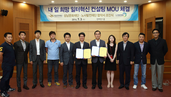 이날 협약식에서 성남문화재단은 컨설팅에 적극적인 협조를 약속했고 노사발전재단은 합리적이고 노사가 만족할 수 있는 결과물 도출을 위한 최선의 노력을 약속했다.