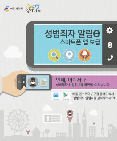 여성가족부는 이달말부터 ‘성범죄자 알림e’ 스마트폰 앱을 보급, 이용자가 스마트폰에 다운받아 활용할 수 있다고 밝혔다.