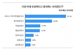 강사 전문 취업포털 '강사닷컴'은 구직자 990명을 대상으로 실시한 설문 결과 ‘미래 가장 유망하다고 생각하는 자격증’으로 ‘영어 전문강사’를 제치고 ‘서비스·이미지컨설팅 강사’가 1위(35.1%)로 뽑혔다고 밝혔다.