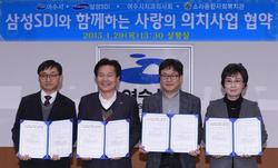 시는 29일 오후 시청 상황실에서 삼성SDI, 여수시치과의사회, 소라종합사회복지관 등과 ‘사랑의 의치사업’을 위한 민 관 업무협약을 체결했다.