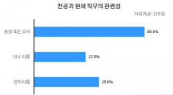 ‘다소 다르다’는 22.8%였으며 ‘전혀 다르다’는 28.6%로 전공을 살리지 못하는 이들도 상당수 존재했다.