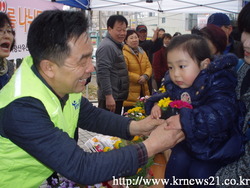 나눔문화공동체 투게더광산 우산동위원회(위원장 김철주)가 주민들의 건강과 행복을 기원하는 ‘새봄맞이 희망의 꽃씨 나누기 행사’를 빛고을국민체육센터 앞에서 실시했다.