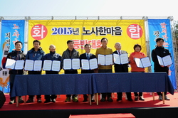 광주지역 노·사·민·정협의회는 24일 오전 담양 금성산성에서 윤장현 광주광역시장, 윤종해 한국노총 광주지역본부 의장, 최상준 광주경영자총협회 회장, 방철호 광주시민사회단체총연합 회장, 김양현 광주지방고용노동청장 등 노·사·민·정 관계자와 시민 등 300여 명이 참석한 가운데 ‘2015년 노사민정 사회적 책임실천 선언식과 노사 한마음 등반대회’를 열었다.