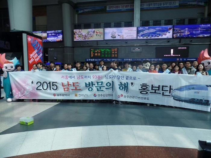 광주광역시와 전남도가 2일 호남고속철도 개통을 맞아 용산역에서 ‘2015 남도 방문의 해’ 홍보 캠페인 활동을 펼쳤다.