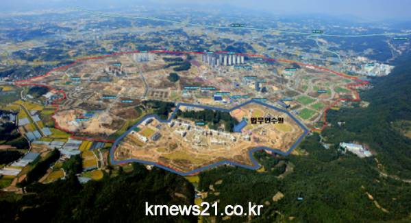 ▲ 법무연수원, 충북 진천군 덕산면·음성군 맹동면 일원법무·검찰 교육의 중추기관인 법무연수원이 5. 27.(수) 오후 3시 충북혁신도시 소재 법무연수원 대강당에서 관련 인사와 지역주민 등 450여 명이 참석한 가운데 이전식을 가졌다.