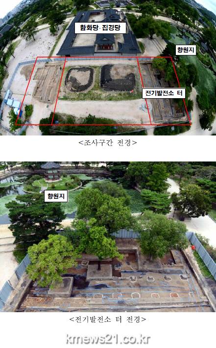 이번 조사를 통해 그동안 향원지의 북쪽과 건청궁(乾淸宮) 남쪽 사이에 있었던 것으로 알려졌던 전기등소의 위치가 향원지 남쪽과 영훈당의 북쪽 사이인 것으로 밝혀졌다. 조사 결과, 이곳에서는 원료인 석탄을 보관하던 탄고(炭庫)와 발전소 터 등 1887년 우리나라 최초로 세워졌던 전기등소 유구가 확인되었다. 아울러 아크등(arc lamp)에 사용되었던 탄소봉, 연대(1870년)가 새겨진 유리 절연체 등 전기 관련 유물도 출토되었다.