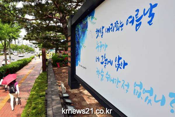 수원시는 인문도시 조성사업으로 추진하고 있는 수원 희망 글판 여름 편을 시청 담장에 선보였다.
