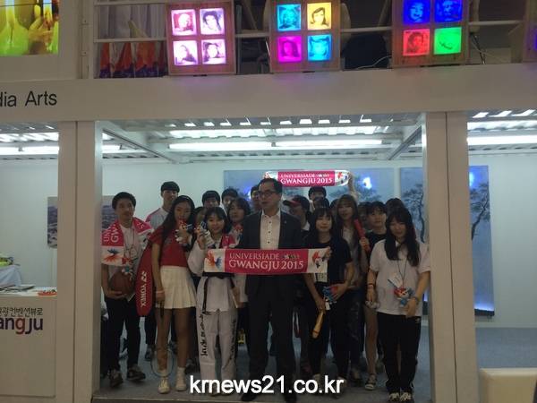 시는 이 자리에서 이이남씨의 ‘광주는 빛이다’를 비롯해 세계 대학생들의 문화 스포츠 축제인 광주u대회를 표현한 미디어아트 작가 박상화, 손봉채, 정운학, 정선휘씨의 작품을 전시해 참가자들의 호응을 얻었다.