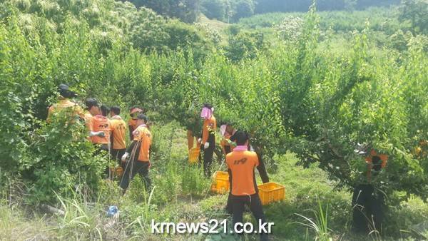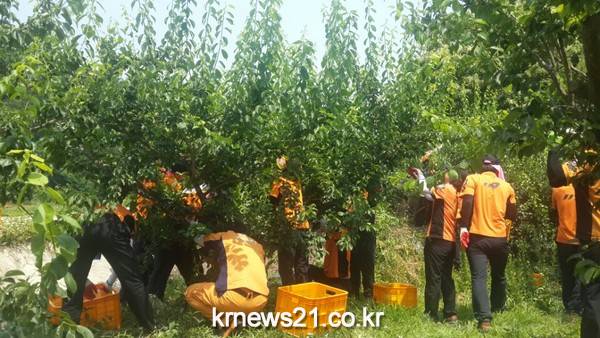 전주덕진소방서는 (서장 유우종) 직원들은 지난 12일 중동호흡기증후군(MERS·메르스) 발생으로 일손 구하기에 어려움을 겪고 있는 순창군 동계면을 찾아 봉사활동을 실시하는 등 구슬땀을 흘렸다.이날 일손돕기에는 유우종 소방서장을 비롯해 직원 25명이 참여하여 매실수확에 정성을 보탰다