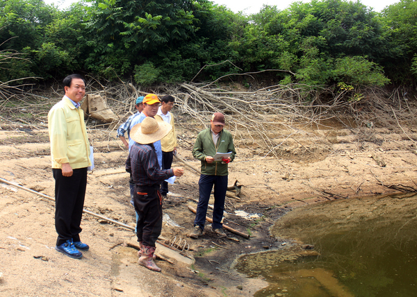 안병호 함평군수가 15일 함평읍과 학교면 일대 저수지를 둘러보며 가뭄 피해 최소화에 발벗고 나섰다.
