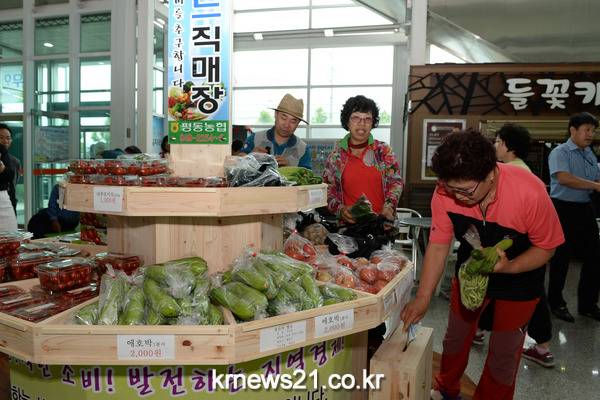 1호점은 지금까지 평동농협 작목반에서 그날 수확한 싱싱한 오이, 가지, 애호박, 방울토마토, 감자 등을 시중보다 싼 가격에 판매해 농민과 주민 모두에게 큰 인기다. 1개월 매출이 2,200만원으로 하루 평균 100만원을 벌어들인 셈.