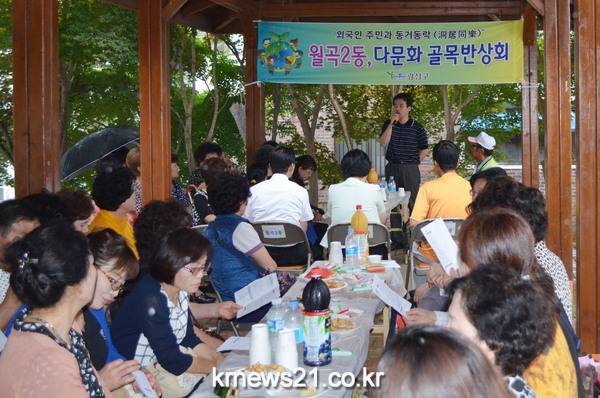 25일 광주 광산구 월곡2동 주민 80여명이 하남 제2어린이공원에서 ‘다문화 골목반상회’를 열었다.