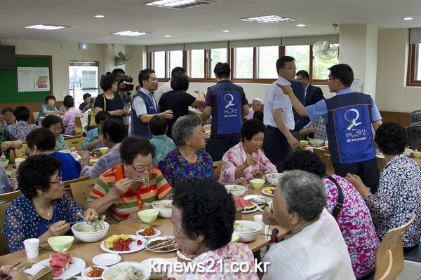 공연이 모두 끝난 뒤에는 현대자동차 전주서비스센터 직원들이 초복을 앞두고 어르신들 몸보신을 위해 정성껏 준비한 보양식 삼계탕 점심 대접도 이어졌다.현대자동차 전주서비스센터는 이 밖에도 참가 어르신 전원에게 기념품 치킨아트 세라믹 통주물 냄비와 간식용 쇠머리찰떡 등을 선물해 큰 호응을 얻기도 했다. 한편 올해로 2회째인 지역 어르신 건강한 여름 나기 초청행사는 현대자동차 전주서비스센터 80여 명의 직원들이 매월 자발적으로 적립 중인 회비를 기반으로 개최되고 있으며, 이들 노사는 지역사회에 대한 공헌 및 더불어 함께 사는 세상 만들기에 기여하기 위해 앞으로도 이 행사를 지속적으로 이어 나간다는 방침이다.