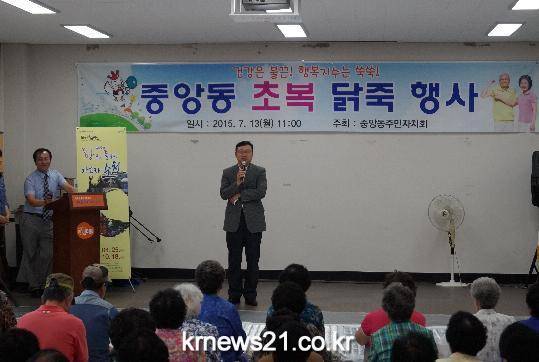 순천시 중앙동에서는 오늘 오전 천태만상 창조센터에서 어르신 300여분을 모시고 건강한 여름나기를 위한 ‘제9회 중앙동 초복 닭죽 나눔 행사’를 가졌다.