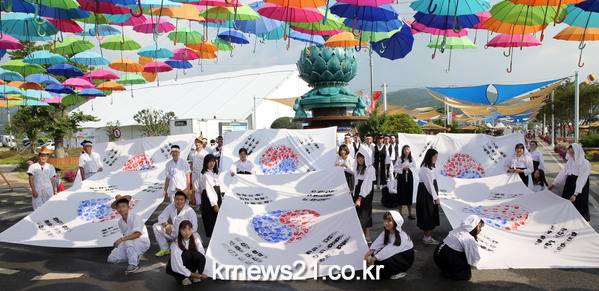 행사기간 중 7장의 태극기를 만들어 행사장 곳곳에 게양했고 청자축제 이후 강진읍 오감통 시장이나 현충탑 인근에 70일 동안 전시하여 광복 70주년의 의미를 되새길 계획이다.