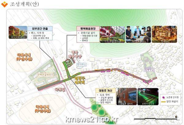 여기에 폭 7m, 길이 420m의 도로와 길을 재정비하고, 마을 진입부와 담장 등에는 그림을 그려 국화길을 조성하는 등 새로운 볼거리를 만들 예정이다.