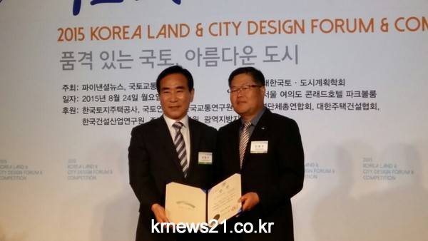 수원시는 지난 24일, 파이낸셜뉴스와 국토교통부가 공동주최하는 ‘2015 대한민국 국토도시디자인대전’에서 ‘수원천 복원사업’이 ‘공원·녹지 및 하천’ 부문에서 최우수상인 국토교통부 장관상을 수상했다.