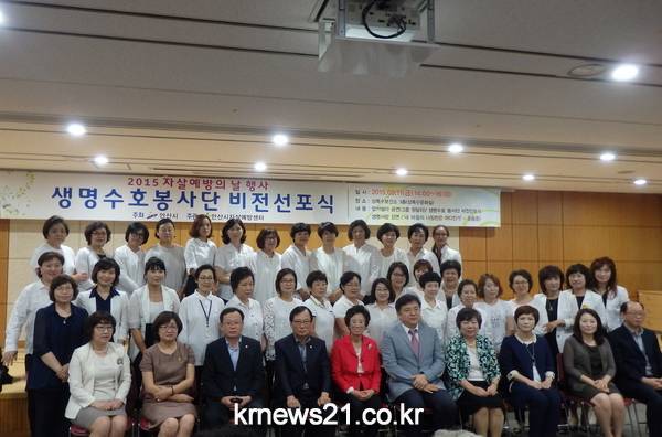 안산시 자살예방센터는 지난 9월 11일 상록수보건소에서 김윤희 센터장, 김의숙 상록수보건소장을 비롯하여 봉사단 회원 등 약 200여명이 참석한 가운데 ‘생명수호 봉사단 비전 선포식’을 개최해서 지역 주민과 함께 하는 자살예방 활동을 위한 각오를 다졌다.