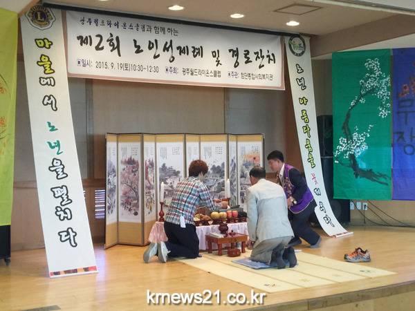 19일 광산구 첨단종합사회복지관(관장 이상태)이 광주월드라이온스클럽과 함께 ‘제2회 노인성제례 및 경로잔치’를 열었다.