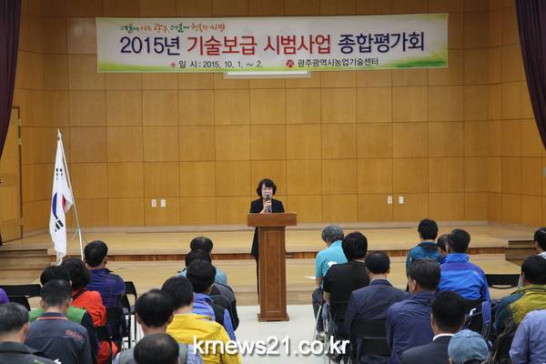 광주광역시농업기술센터는 1일 센터 2층 대강당에서 식량작물, 채소, 과수 등 관내 농업인과 유관기관 관계자가 참석한 가운데 2015년 기술보급 시범사업 종합평가회를 개최했다.