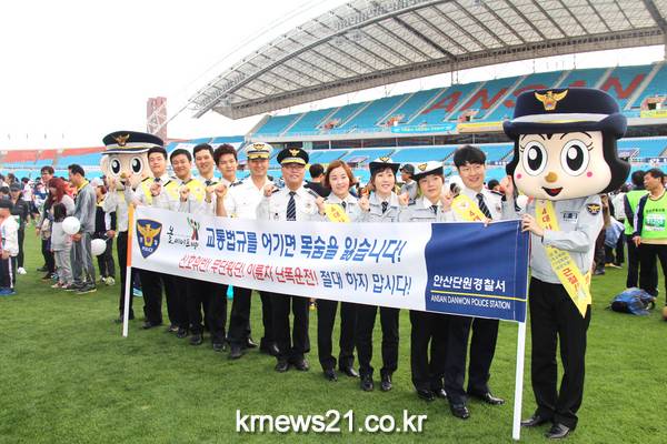 안산단원경찰서(서장 황창선)에서는, 지난 4일 환경문화 생태도시 안산시에서 시 승격 30주년을 맞아 개최한‘2015 안산희망마라톤대회’에서 경찰홍보 부스를 마련, 4대악 근절 및 교통법규의 중요성을 홍보하고, 어린이들에게 포돌이 마스코트와 함께 사진을 찍어주는 시간을 가져 대회에 참여한 시민들로부터 좋은 반응을 얻었다.