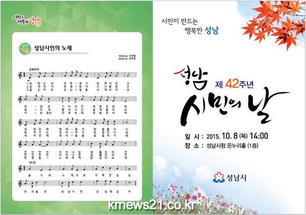 성남시(시장 이재명)는 오는 10월 8일 오후 1시~5시 시청 온누리 홀과 로비, 광장에서 ‘제42주년 성남시민의 날 행사’를 연다.