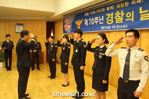 광주경찰서(서장 강도희)는, 21일 오전 11시 4층 대강당에서 경찰관과 의경, 협력단체 회원 등 200여명이 참석한 가운데 제70주년 경찰의 날 기념식을 가졌다.