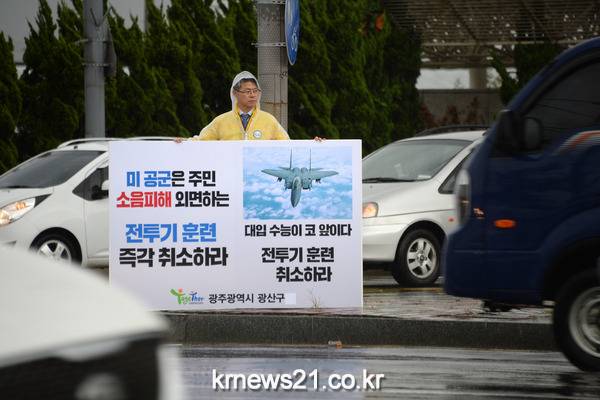 이날 민 구청장을 시작으로 광주 군공항 소음피해 지역인 송정동, 도산동, 어룡동, 동곡동, 신흥동 주민들이 한미연합 비행훈련 취소를 요구하는 1인 시위를 이어갈 계획이다.