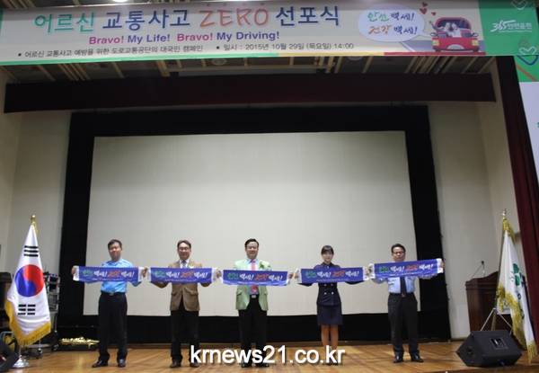 도로교통공단 서울지부(지부장 황덕규)는 10월 29일(목), 오후 2시 서울 서초구청대강당에서 안전백세! 건강백세! 슬로건을 걸고‘어르신 교통사고 Zero’선포식을 개최했다.