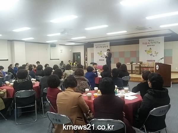 두 번째 ‘생명사랑 힐링톡’은 10일 오후 2시 김성완 정신과 전문의가 상담자로 나선 가운데 수완동주민센터에서 열렸다.