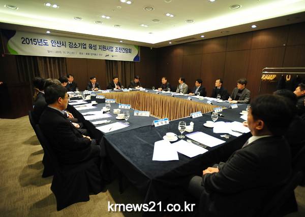 안산시(시장 제종길)는 11월 25일 호텔인터불고에서 강소기업 육성 지원 사업 참여 15개 업체대표와 조찬 간담회를 개최했다.