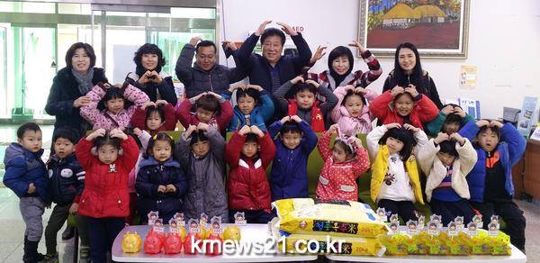 이 지역에 있는 라파엘어린이집(원장 방영주) 원아 20명이 그 주인공. 아이들은 어려운 이웃에게 전해달라며 돼지저금통 23개와 쌀 40kg을 가져왔다.