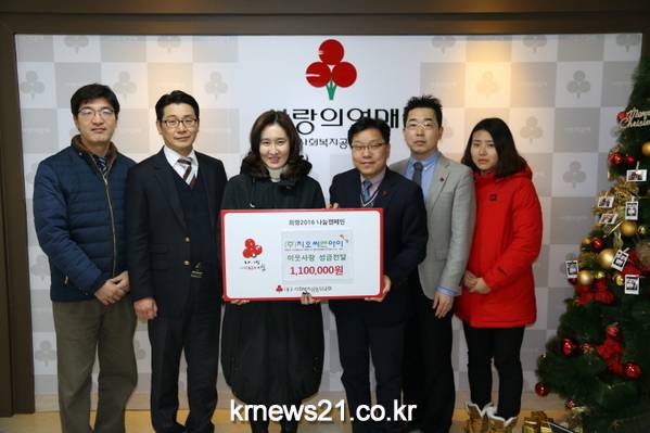 ㈜지오씨엔아이(대표 정미화)는 12월 30일, 대구공동모금회 회의실에서 정미화 ㈜지오씨엔아이 대표, 박용훈 대구공동모금회 사무처장 및 관계자들이 참석한 가운데 이웃사랑성금 1백 1십만원을 대구사회복지공동모금회(회장 함인석)에 전달하며 ‘희망2016나눔캠페인’에 동참했다.