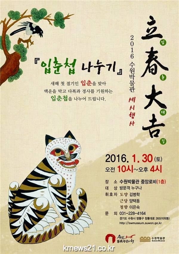 수원박물관은 2016년 새해 입춘(立春)을 맞아 오는 30일 ‘입춘첩(立春帖) 나누기’행사를 개최한다.
