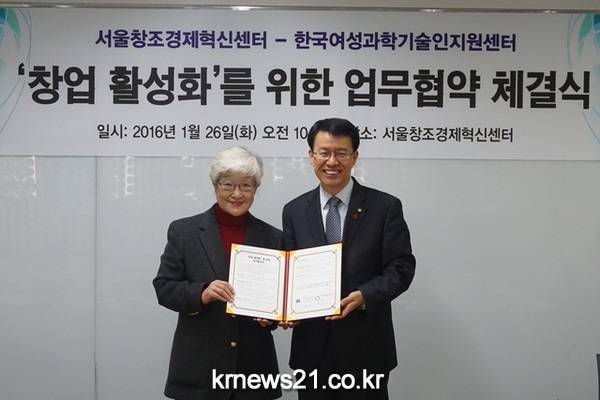 한국여성과학기술인지원센터(WISET, 소장 이혜숙)와 서울창조경제혁신센터(센터장 박용호)가 26일 서울창조경제혁신센터에서 ‘청년 창업 활성화’를 위한 업무협약을 체결했다.