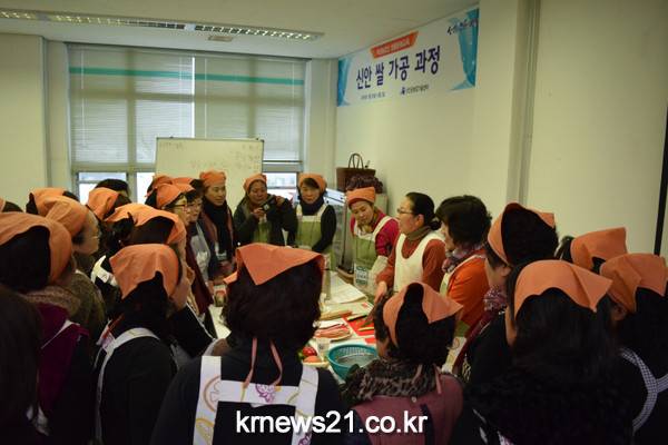 설 명절을 맞아 신안쌀 가공 교육생들이 교육과정을 통해 얻은 지식과 재능을 활용하여 사랑의 쌀 가공품 나눔 행사를 2일에 추진하였다.