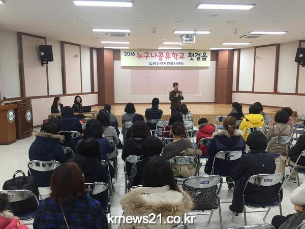 ‘누구나 공유학교’ 강사진과 수강생 100여 명은 지난 26일 오전 하남동 광산구자원봉사센터 회의실에서 오리엔테이션을 가졌다.