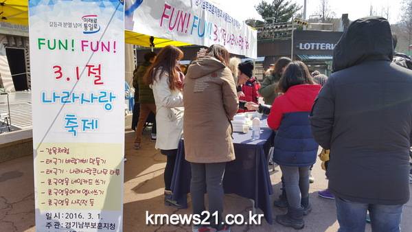 경기남부보훈지청(지청장 남창수)에서는 3월1일 과천 서울 랜드와 함께 『Fun! Fun! 3․1절 나라사랑 축제』행사를 개최하였다.