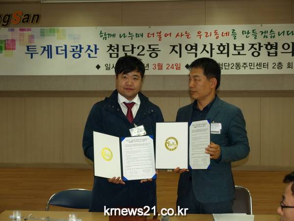 협약식은 이날 첨단2동 지사협이 정기총회를 개최한 동 주민센터에서 가졌다.
