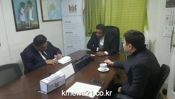 W-재단은 피지 정부의 구호 요청을 받고 피지 기후난민들을 돕기 위해 7억원 상당의 의류 10,000점을 주한피지대사관에 전달했다.