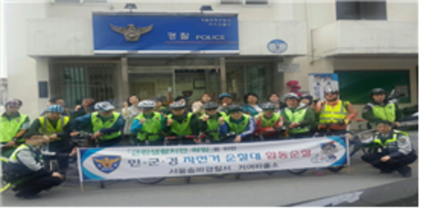 서울 송파경찰서 거여파출소는, 남한산성 북쪽지역에 위치한 도시 서민층 주거지역으로 어린이공원, 학교폭력, 상춘기 기초질서 확립을 위해 2016. 4. 4(월) 이 지역 송파녹색자전거봉사단과 MOU를 체결하고, 2016. 4. 6(수) 자전거발대식을 동호회원, 인근에 살고 있는 특전사 군인과 함께 우리 동네 치안불안 해소를 위한 캠페인을 실시했다.