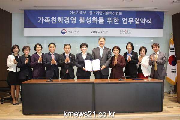 여성가족부(장관 강은희)와 이노비즈협회(회장 이규대)가 중소기업의 가족친화경영 확산을 위해 함께 나선다.