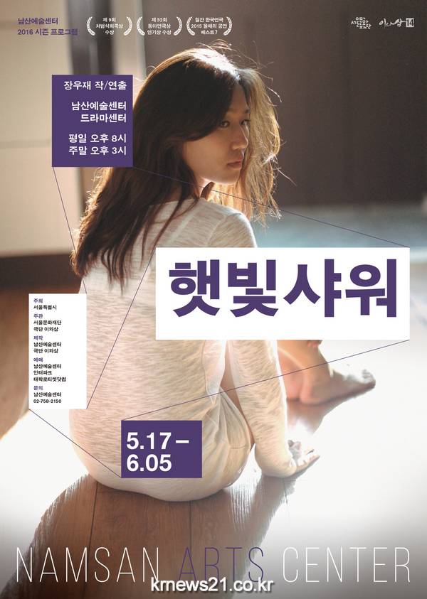 한편 ‘햇빛샤워’는 새로운 관객참여 프로그램인 ‘남산여담’과 극장투어를 운영한다. 5월 21일(토)과 6월 4일(토) 공연 종료 후 장우재(작/연출), 조만수(연극평론가, 드라마터그), 김명화(극작가)가 작품에 대한 대담을 나눌 예정이며 극장투어는 5월 28일(토) 12시부터 약 1시간의 일정으로 진행된다.