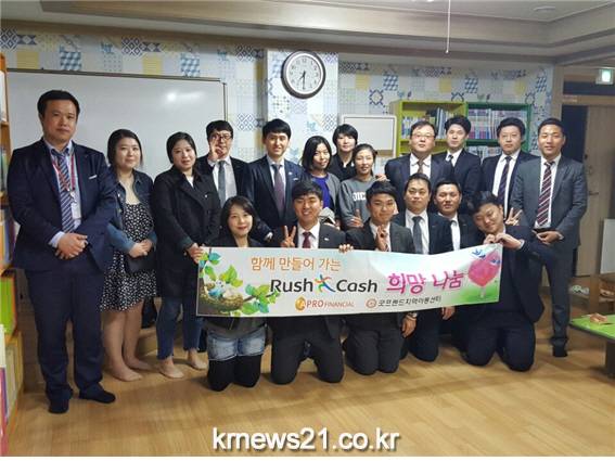 러시앤캐시 둔산지점(지점장 강춘구)과 중앙로지점(지점장 이정미)이 4월19일(화) 사단법인 굿프랜드가 운영하는 굿프랜드 지역아동센터를 방문하여 뜻깊은 사회공헌 활동을 펼쳤다.