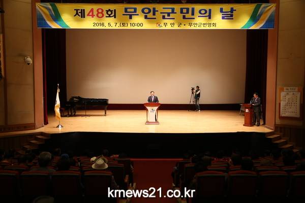 무안군(군수 김철주)은 군민화합과 번영을 다짐하는 제48회 군민의 날 행사를 7일 10시에 승달문화예술회관 대공연장에서 기관․사회단체장과 향우 및 군민 500여명이 참석한 가운데 개최했다.