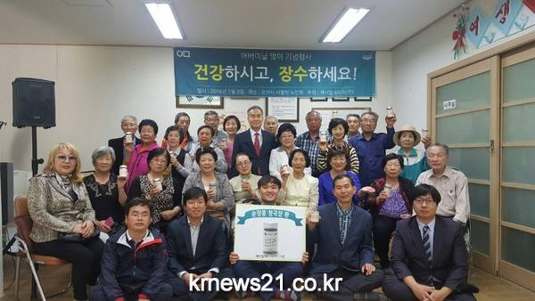 제너럴네이처(주)(대표이사 백진수 박사)의 건강장수 발효식품 브랜드 ‘순창콩 청국장환(KOREA BEANS)’이 5월 가정의 달을 맞아 실버세대 어르신들의 건강장수를 기원하고자 6일 익산시 실버대학과 8일 오산시 사할린 노인회에서 총 70명의 어버이를 모시고 따뜻한 어버이날 행사를 가졌다.
