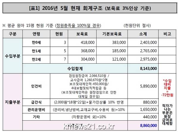 그러나 정부는 작년 말 국회예산이 통과되고 난 이후 보육료 6% 인상을 당연시한 정치권 및 각종 언론 보도에도 불구하고 단 한 차례도 이를 바로 잡지 않았다. 이로 인해 아무것도 모르는 이해당사자들을 혼란에 빠뜨렸으며 그 결과 전체 어린이집이 심각한 운영난을 초래하게 하였다.